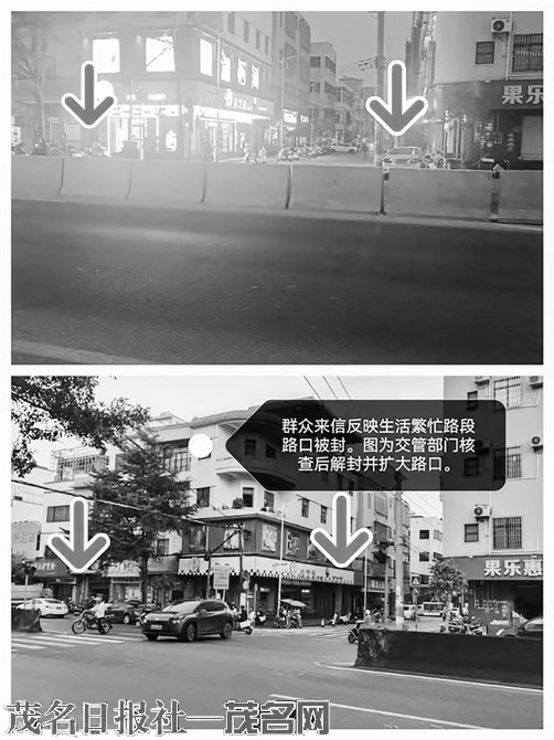 群众来信反映生活繁忙路段路口被封。交管部门核查后解封并扩大路口。
