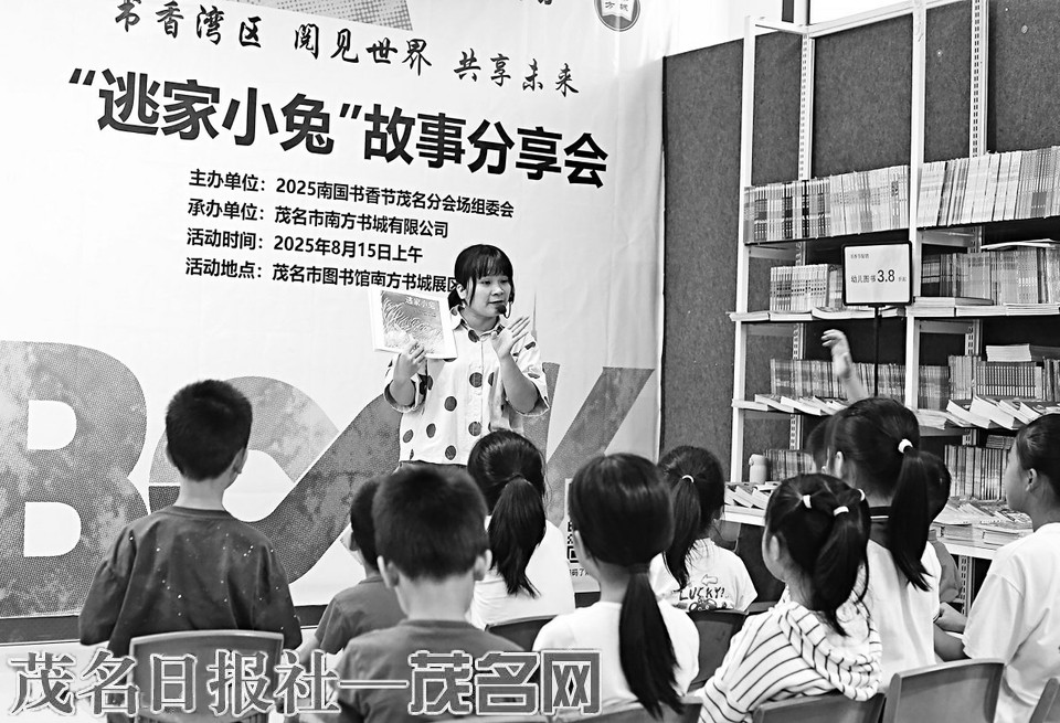 本报讯 8月15日,2025南国书香节茂名分会场活动正式拉开帷幕。当日,一场温馨的“逃家小兔”故事分享会在茂名市图书馆南方书城展区举行,吸引了众多孩子及家长热情参与(如图),为书香节注入了温暖的亲子共读氛围。
