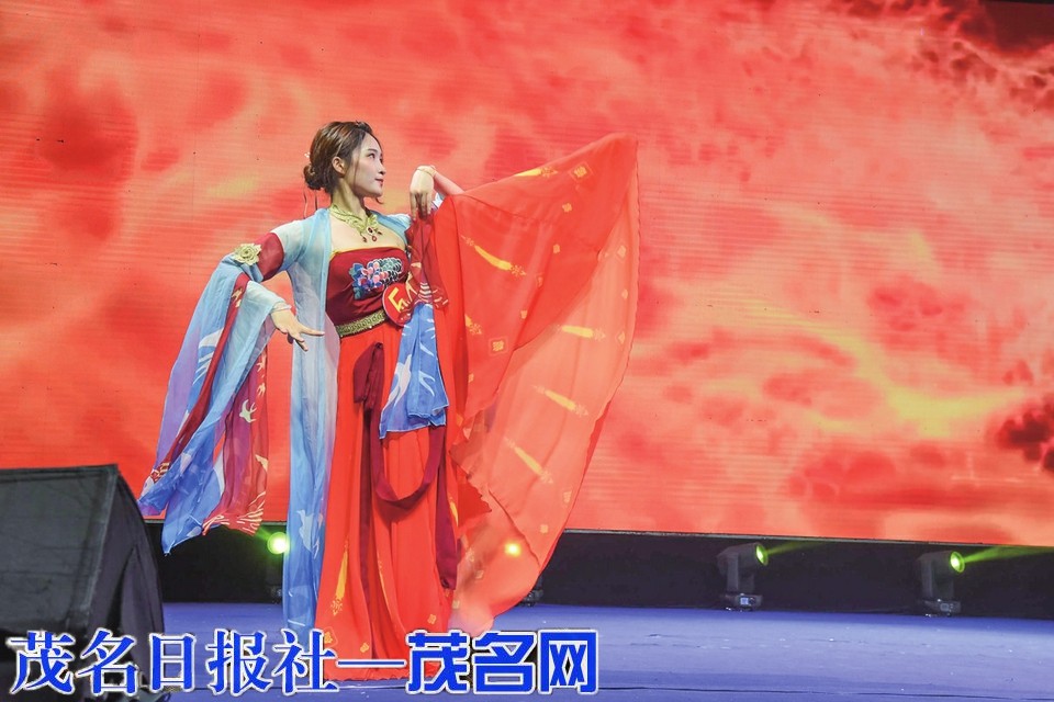 当晚,比赛在选手们的集体走秀中正式启幕。选手们依次登台展示才华,全方位展现了新时代青年深厚的文化素养与自信飞扬的青春风采。本次赛事精彩纷呈,内容丰富多样,选手们各施所长,使出“十八般武艺”,以歌唱、舞蹈、朗诵、演讲以及乐器演奏等多种艺术形式奋力比拼,为观众带来一场融合深厚文化与视觉美感于一体的精彩盛宴。她们在舞台上尽情展示才华,以青春活力为冼夫人文化注入新的生命力。选手们的精彩表现赢得了台下观众阵阵热烈的掌声。