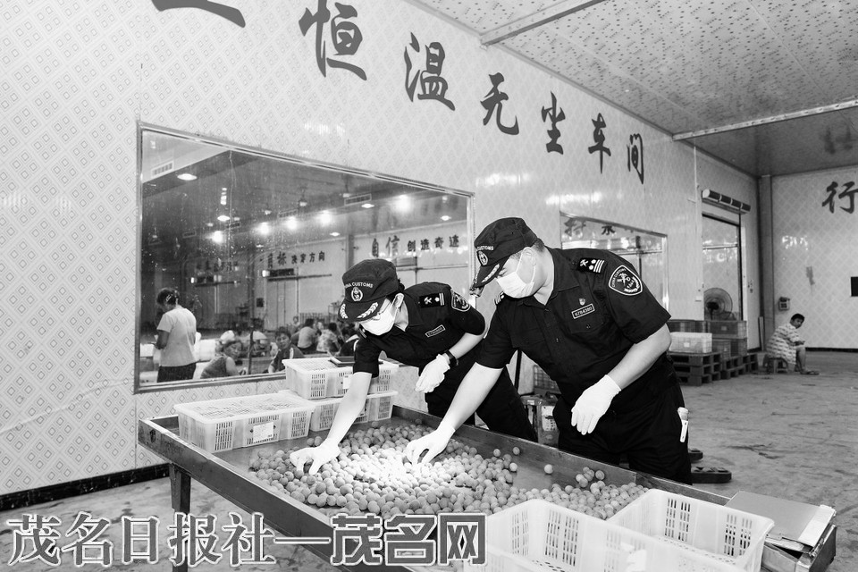 海关人员对出口龙眼进行检查。茂名日报社全媒体记者 张波 摄