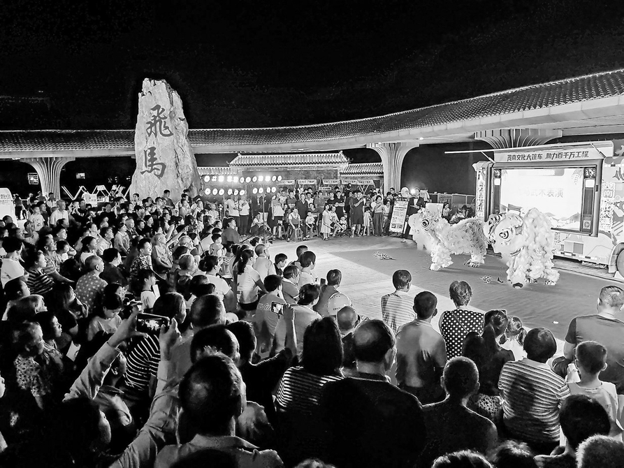 本报讯 8月23日晚,茂南区鳌头镇飞马桥头广场灯火璀璨、人头攒动,茂南文化大篷车“助力百千万工程”主题活动在此举办。此次活动由茂南区“百千万工程”指挥办、茂南区新时代文明实践中心指导,茂南区委宣传部、区文化广电旅游体育局、区精神文明建设办公室及鳌头镇人民政府联合主办,旨在推动农村精神文明建设,助力“百千万工程“,建设文化强区,传播文明新风,落实文化惠民,丰富基层群众精神文化生活。
