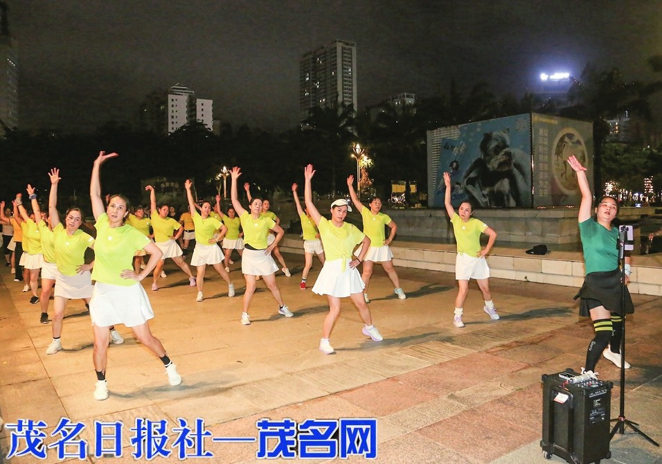夜幕降临,茂名的各大广场热闹无比。伴随着欢快的音乐,广场舞爱好者们翩翩起舞,她们手持色彩鲜艳的扇子,迈着整齐的步伐,尽情享受舞蹈带来的快乐。