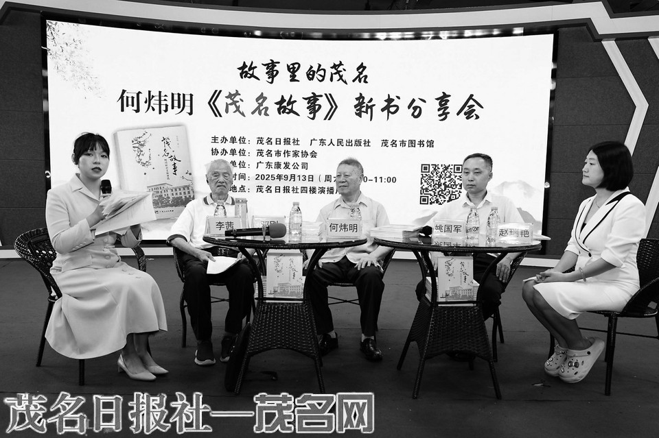 本报讯 昨日,一段穿越时光的茂名文化历史之旅,在茂名日报社四楼演播厅温暖开启。由茂名日报社、广东人民出版社、茂名市图书馆联合主办,茂名市作家协会协办,广东康发公司支持的文化栏目“故事里的茂名”——《茂名故事——何炜明杂文故事选》新书分享会在这里举行。活动现场座无虚席,见证者与建设者共话油城春秋,与现场观众共寻茂名这座城市的历史脉络。新书分享会吸引了来自广州、深圳等地的文化学者,以及茂名文友、茂名日报社全媒体小记者共200多人参加。