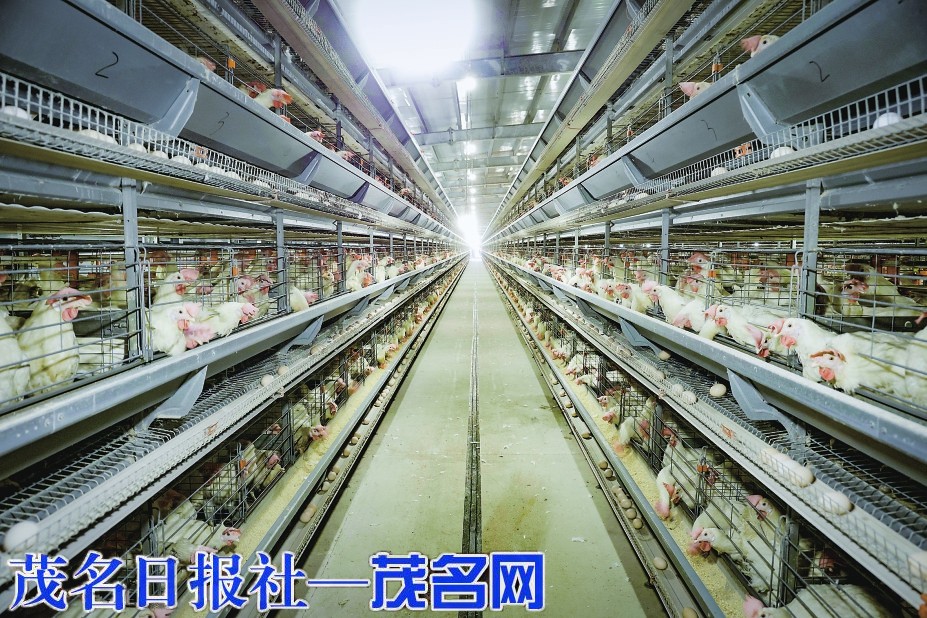 走进化州市林尘镇占地250亩的广东农垦红峰农场蛋鸡标准化养殖基地,百万羽蛋鸡养殖的场面颠覆了人们对传统养鸡场的认知。23栋密闭式鸡舍如同科技方舱,智能控制系统实时调节着温度、湿度和光照,悠扬悦耳的音乐在鸡舍内轻柔回荡。“这些美国海兰灰蛋鸡住的是恒温房,喝的是300米深井水,吃的是中粮定制饲料。所产的鸡蛋正是广受欢迎的‘广垦凤鲜’蛋品牌。”基地负责人梁文宏指着鸡舍顶部的环境监测机器人介绍道,“它们每天的健康数据都会生成报告,全方位守护每一只蛋鸡的健康。”