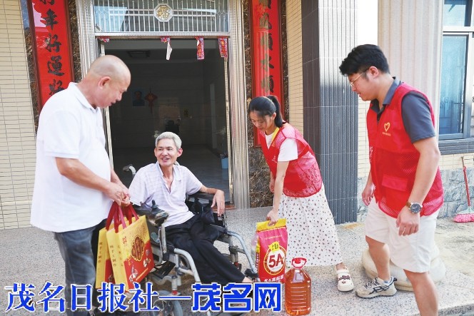 本报讯一份月饼,一份温情;一次握手,一份牵挂。中秋国庆双节期间,茂南区公馆镇沙埇村弥漫着别样的温情。区、镇两级人大代表陈水木穿梭在村巷中,他的脚步踏进了九户特殊困难家庭和公馆镇敬老院,为这个即将到来的团圆佳节增添了浓浓的暖意。