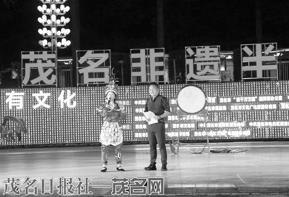 当晚,“冼夫人信俗”高州县级传承人肖月华、“高州山歌”茂名市级代表性传承人周泽明惊喜亮相展演现场,与观众动情分享创作与传承的故事,并呼吁大家能多关注非遗、了解非遗,哪怕只是学一个舞步、唱一句山歌,都是对非遗传承的支持,凝心聚力把茂名的非遗故事讲给更多人听,让千年文化一直“活”下去。