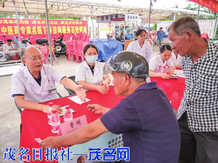 当天下午在袂花镇燕山扶提好心广场设立了潘茂名中医药便民服务点,有岭南名医、市中医药学会名誉理事长曾明教授,市中医药学会秘书长黄少雅主任中医师,市中医药学会监事长卢江华主任中医师,潘茂名第42代中医药传承人彭华正,市中医院中医康复示范病区主任王成云,市职业病防治院副院长钟鸣,广州中医药大学博士阮竞锋,茂名健康学院潘茂名中医药传承班负责人李健、电白区第二人民医院妇产科主任钟玲强秀等20多名专家名医以及潘茂名中医药传承人等参加义诊,开展名医健康咨询、扶提平安贴体验、推拿理疗、养生保健指导等(如下图,茂名日报社全媒体记者 康乾 摄)。袂花镇群众纷纷表示这种中医药下乡便民服务是当地第一次。茂名市政协提案法制委原主任、燕山非遗项目代表性传承人、潘茂名研究专家吴康松表示,这次“燕山夜话”粤西非遗活动是最接地气一次,让家乡人民受惠更多中医药文化成果,立足燕山,汇聚茂名周边地区更多文化交流。