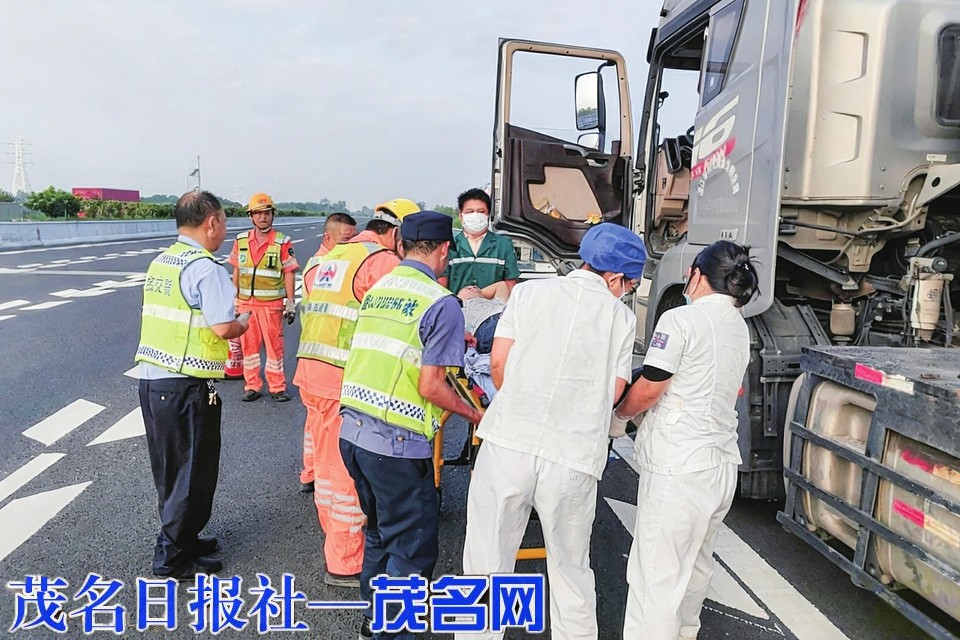 随后高速交警、拯救、医护人员相继到场,路政员协助各方做好交通秩序维护同时,确保司机及时送医院治疗,相关大货车临时拖移到电白服务区停放。