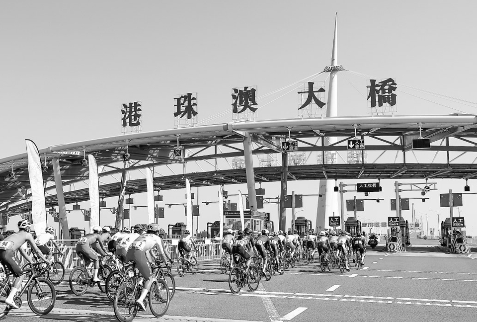 11月8日,参赛选手经过港珠澳大桥闸口。新华社记者 毛思倩 摄