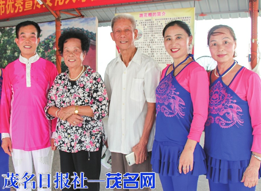 张振谦(中)和跳花棚演员。茂名日报社全媒体记者 吴小英 摄