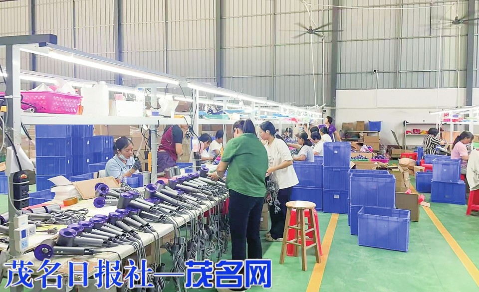 “以前在家门口找稳定工作难,现在下楼走几分钟就到车间,每月能挣4000多,还能照顾老人孩子,日子踏实多了!”在化州那务镇,李姐一边熟练组装智能电吹风,一边笑着说道。