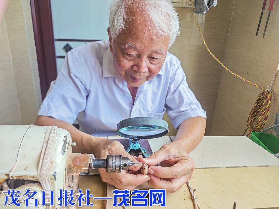 他随手拿过一旁的刻刀,借着放大镜,如针尖般的利刃对准一头蓄势待发的“斗牛”,寥寥数刀,鼓胀的肌肉呼之欲出……尽管已是83岁高龄,省级非遗项目核雕(缅茄雕刻)代表性传承人梁毓宜的双手依然稳如泰山,他神情专注,仿佛手中捧着的不是一方果核,而是在他刀锋下徐徐展开的大千世界。