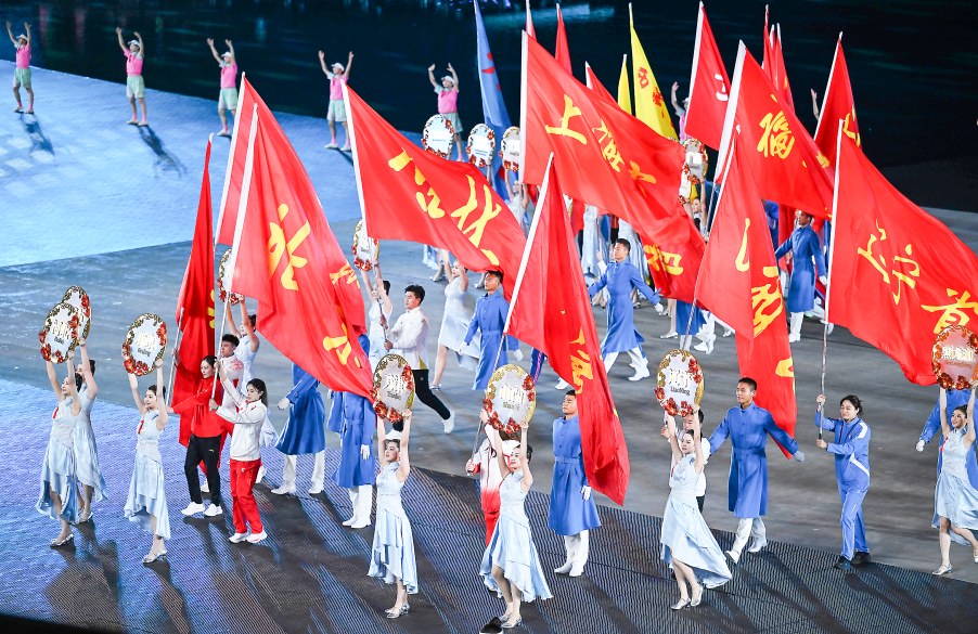 漫天星辉闪耀时,万千豪情竞风流。马龙、潘展乐、苏炳添、王霜……熟悉的面孔接连出现,来自五湖四海的运动员、教练员和裁判员一同入场。