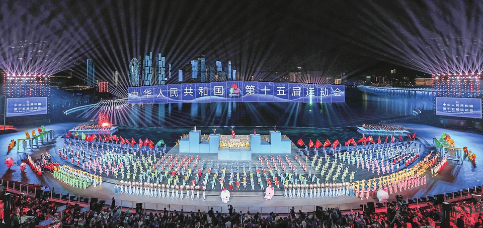 中华人民共和国第十五届运动会在这一片以“海与城”为背景的露天舞台上落下帷幕。这场首次由粤港澳三地共同举办的全运盛会,将承载着无数温情记忆,融入海洋星空。
