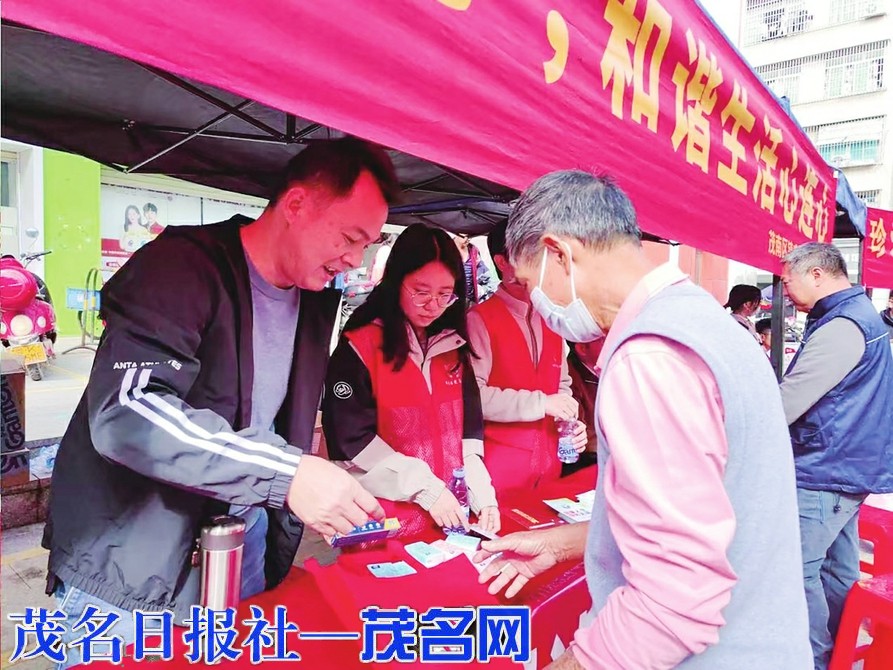 本报讯 11月21日上午,茂南区镇盛镇政府联合茂南区人民法院、茂南区扫黑办、茂南区司法局,共同组织开展平安建设宣传活动。活动以提升辖区群众安全感、常态化扫黑除恶工作满意度及矛盾纠纷化解工作满意度为核心目标,同步强化反邪教宣传、预防未成年人违法犯罪引导与打击电信网络诈骗宣传,全力营造全民共建共享平安和谐社会的浓厚氛围。