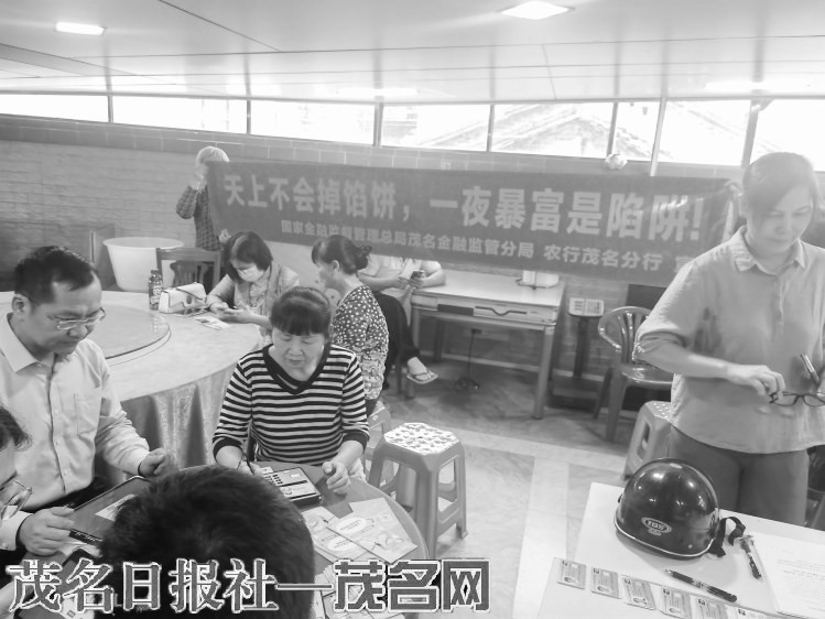 本报讯 为切实守护村民金融财产安全,提升农村地区群众风险防范意识,近日,中国农业银行茂名茂南支行组织走进新屋村委,开展以“天上不会掉馅饼,一夜暴富是陷阱”为主题的金融知识宣传活动(如图)。