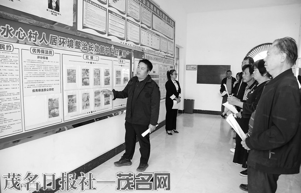 村干部向村民讲解积分制评分标准。茂名日报社全媒体记者 李颜东 摄