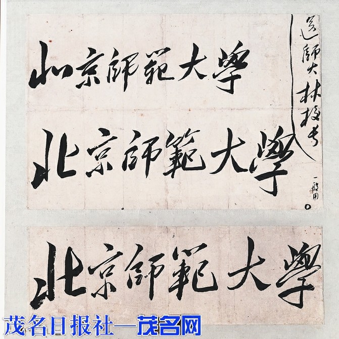 1950 年毛主席为北京师范大学题写校名,并注“送师大林校长”字样。