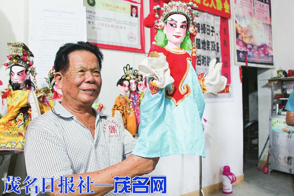 木偶戏按表演人数可分单人、双人、多人三种。电白木偶戏多为单人戏,以粤语乡音说唱,锣鼓相伴,唱腔圆润,剧目多取自民间传说、历史演义。林秀槐由铁杆戏迷变成操偶艺人,只因结识了远近闻名的木偶戏师傅——周家允。