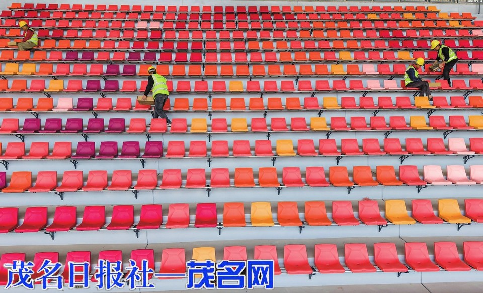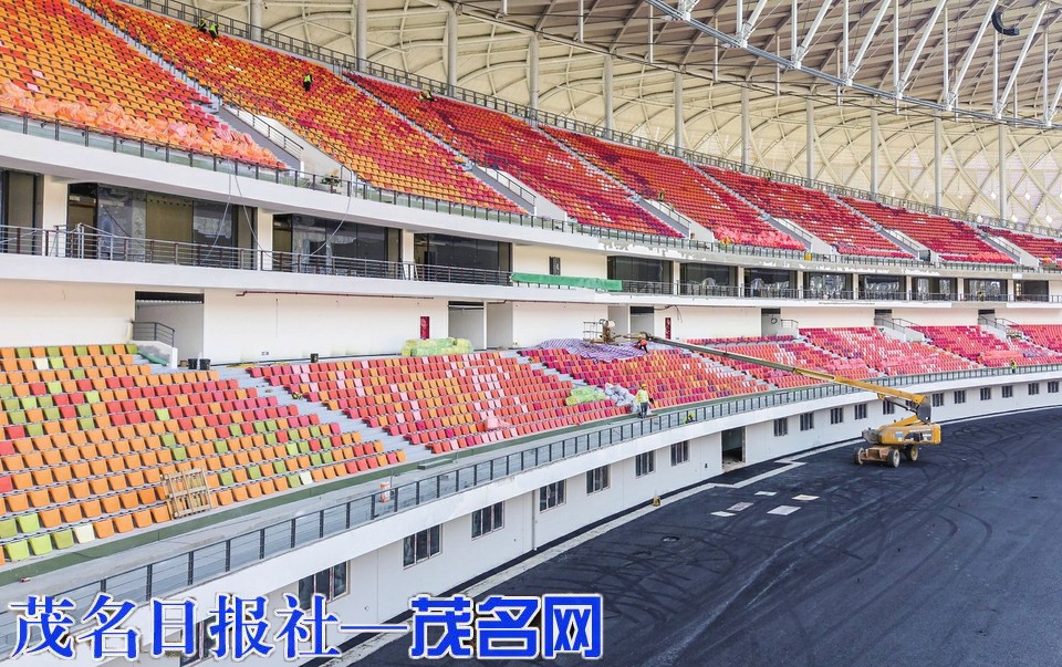 本报讯 近日,茂名奥体中心体育馆建设进入关键的内部设施安装阶段。宽敞宏伟的场馆内,施工人员正有序进行观众席座椅的安装作业,标志着这座备受瞩目的现代化体育场馆正向竣工投用迈出坚实一步。