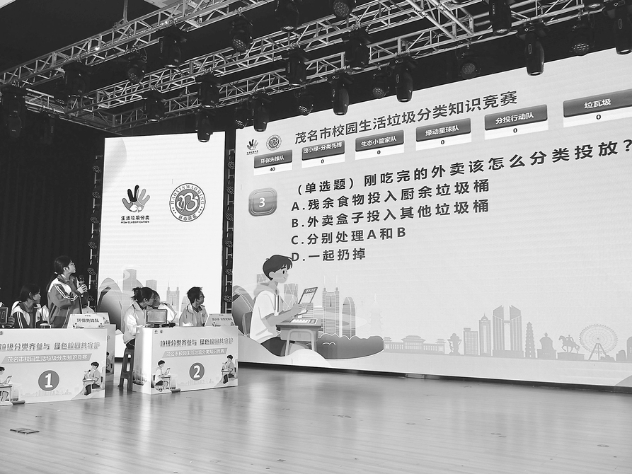 本报讯 12月5日上午,“垃圾分类齐参与绿色校园共守护”茂名市校园生活垃圾分类知识竞赛在市青少年活动中心举行,16支中小学参赛队伍同台竞技,以赛传知、以赛促行,推动垃圾分类理念在校园落地生根,引领绿色文明新风尚。