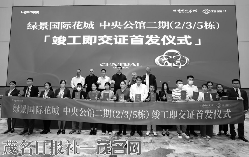 本报讯 一场业主翘首企盼的“竣工即交证、交房即交证”颁证仪式在化州市绿景国际花城营销中心举行。化州市自然资源局、化州市不动产登记中心、化州市住建局、化州市税务局等部门领导同志和绿景公司有关领导出席活动,并一起为13位业主代表递上崭新的不动产权证书(如图)。