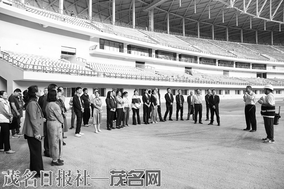 工作人员向人大代表介绍奥体中心建设情况。茂名日报社全媒体记者 李颜东 摄