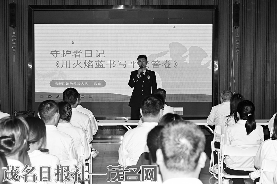 活动特邀高新区消防救援大队消防员吕鑫、茂名高新应急管理局安全生产基础和执法监督组组长卢德彦、高新区消防救援大队宣讲员胡曦婷三位百姓宣讲员,带来三场内容丰富、针对性强的宣讲。吕鑫以《守护者日记:以“火焰蓝”书写平安答卷》为题,结合一线救援亲身经历,生动展现消防战士的责任与无畏,让现场听众深刻体会到每一份平安背后“火焰蓝”的默默坚守;卢德彦聚焦《以安全护航发展以坚守书写担当》,立足安全生产监管一线经验,深入剖析企业安全生产责任体系,解读相关政策要求,为粮丰园企业如何有效辨识风险、排查隐患、落实全员责任、筑牢生产安全防线提供了清晰指导和务实建议;胡曦婷则以《全民消防,生命至上——安全用火用电》为主题,阐述消防安全的重要意义,分享在工作、生活中应该如何注意用火用电安全,强化“四个能力”建设,倡导全民参与构建群防群治的安全格局。