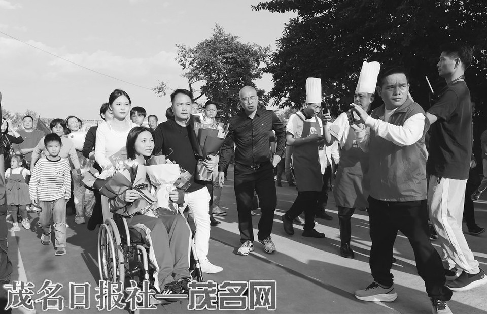 当天下午,轮椅上的“剑客”刘嘉慧回到三赖坡村,受到了家乡父老的夹道欢迎,现场爆发出热烈的掌声和欢呼声,村民们争相与她合影留念,快门声与祝福声交织在一起,奏响了一曲温暖的乐章。
