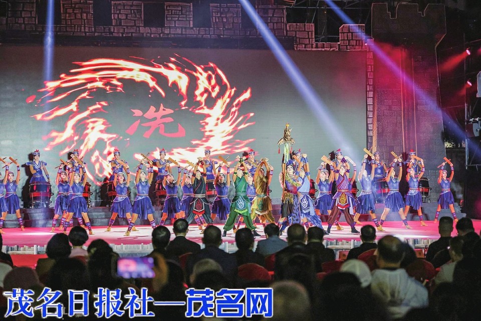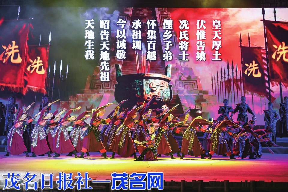 舞台表演篇章精彩纷呈。作为核心首演剧目,《茂名冼太舞》以严整威仪的阵列,灵动诠释了冼夫人和合百越、仁爱如海的“好心”统帅形象;紧随其后的《冼太军魂》则以排山倒海之势,刚烈再现了冼家军忠勇善战、气吞山河的英雄豪情。两部作品同根同源于国家级非遗“冼夫人信俗”,融汇了洪拳武术之刚猛,以豪迈气势,被誉为茂名倾力打造的“冼太爱国战舞”双璧,现场观众赞叹:“潮汕有英歌舞,茂名有冼太舞!”
