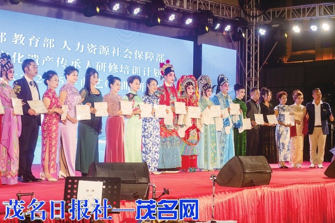 本报讯近日,“中国非物质文化遗产传承人研修培训计划”深圳职业技术大学2025年曲艺(粤曲)研修班汇报送戏演出,在广东渔网小镇高州市石鼓镇及茂南区袂花镇江边公园圆满落幕。深圳市茂名商会文体委主席黄强带领研修班全体学员及授课老师,于12月14日、15日晚间,为当地群众献上了两场浸润粤韵、传递非遗温度的文化盛宴。