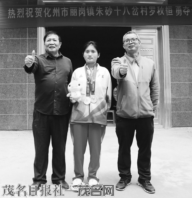 16日,记者来到化州市丽岗镇硃砂圩村罗秋恒的家中,她家是一栋三层的毛坯小楼,门前挂着一条祝贺她夺冠的横幅。在挤满了亲戚邻里的一楼大厅里,罗秋恒显得格外安静沉稳,她默默地坐在父母中间听着大家的谈论。那段十几年前不忍回忆的过往,也在众人的讲述中渐渐清晰。