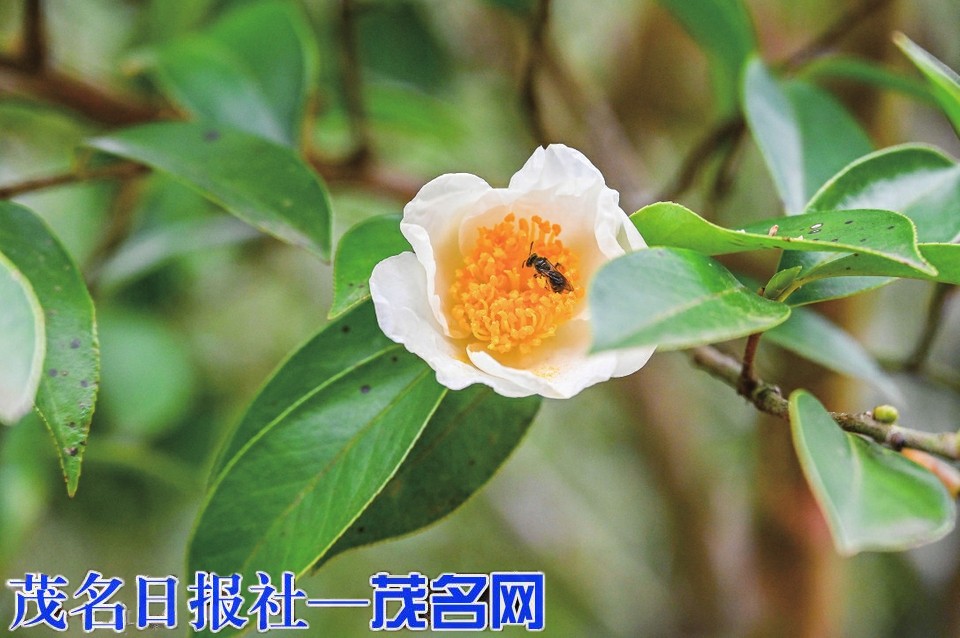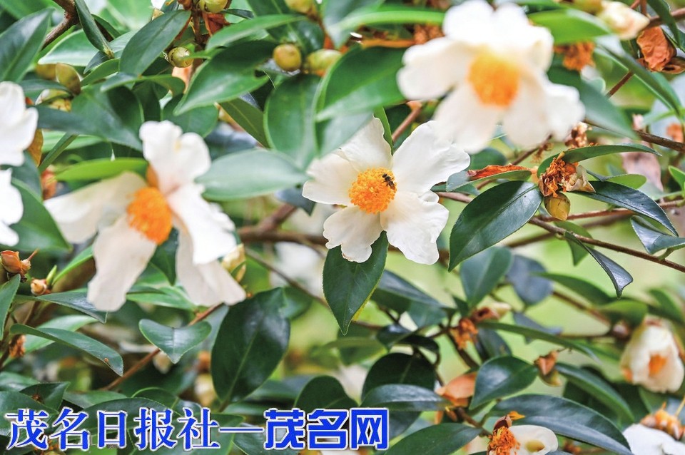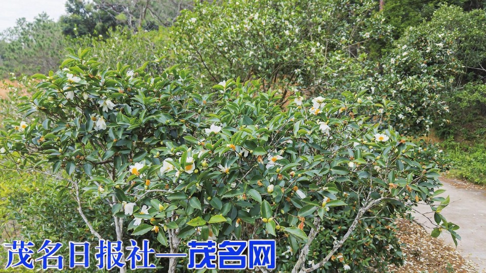 近日,高州市长坡镇旺沙村的千亩油茶林迎来盛花期。漫山遍野的油茶树上,洁白的花瓣簇拥着金黄的花蕊,在微风中摇曳生香,与远山黛影相映成趣,构成一幅生态秀美、产业兴旺的乡村画卷。