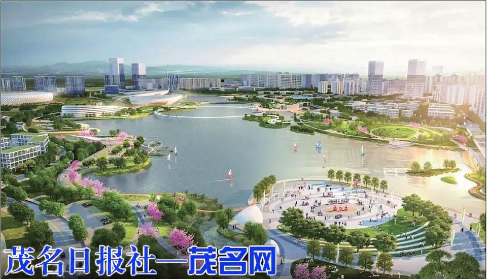 茂名新城中央水体公园规划效果图。