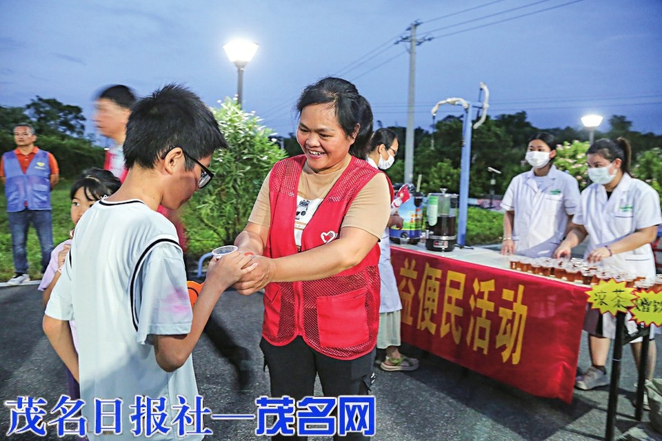 山和村委会的志愿者免费赠送解暑凉茶。