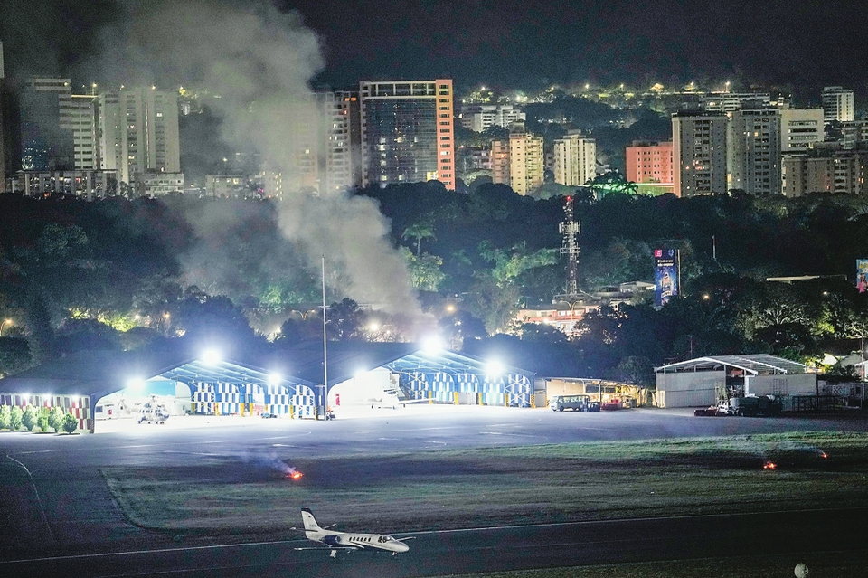 1月3日,委内瑞拉首都加拉加斯拉卡洛塔机场升起浓烟。