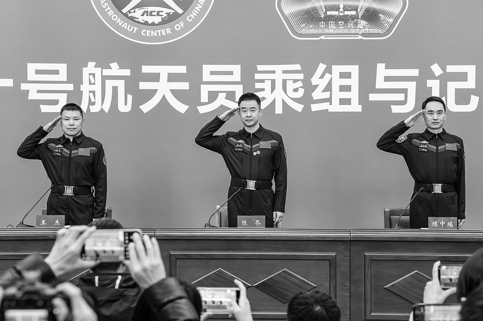 1月16日下午,中国航天员科研训练中心在北京航天城举行神二十乘组与记者见面会,航天员陈冬、陈中瑞、王杰太空归来后首次公开亮相,讲述飞船舷窗遭遇空间碎片撞击后的应急处置过程,分享太空驻留期间的工作感悟。