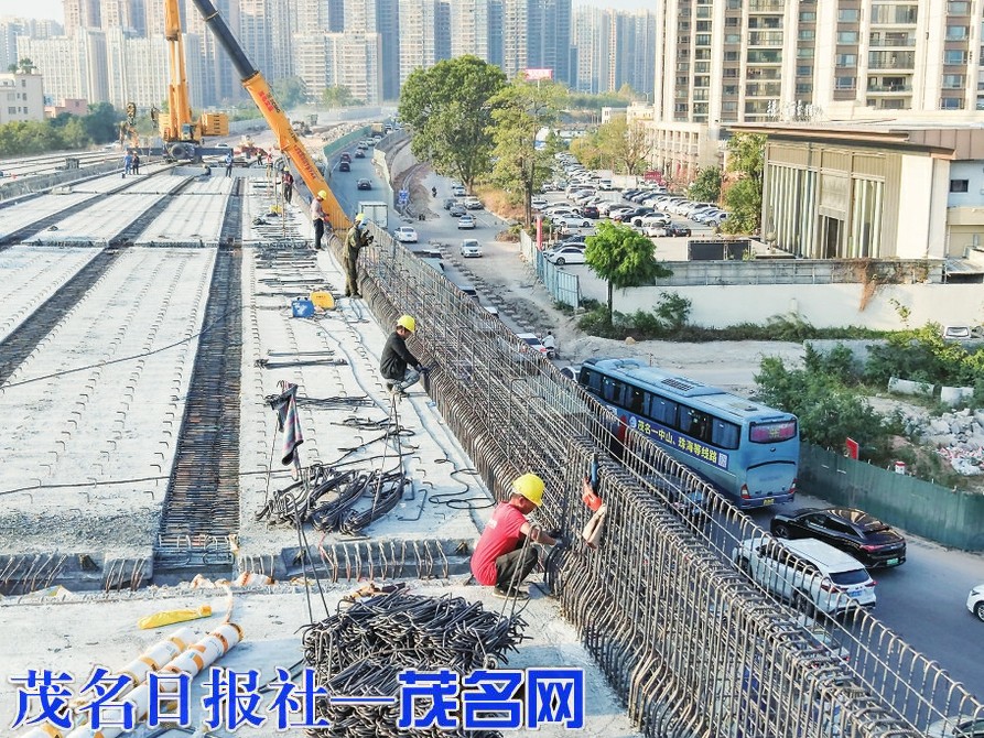 省道S280线(茂名大道)快速化改造项目一期工程主桥箱梁架设完成