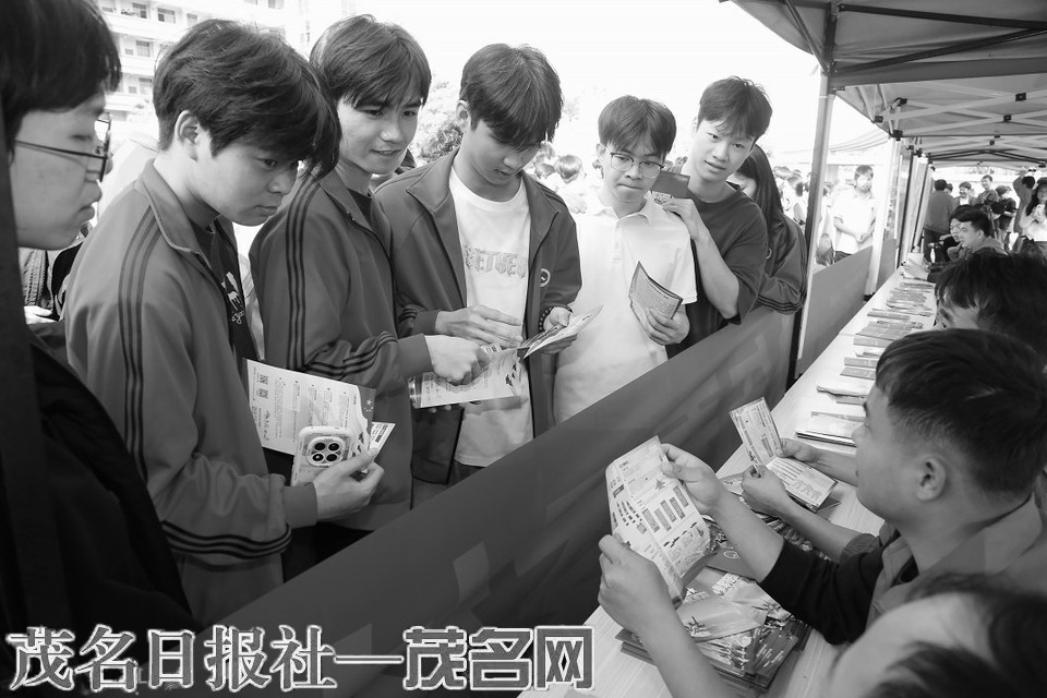 志愿者向学生讲解参军入伍政策。茂名日报社全媒体记者 李颜东 摄