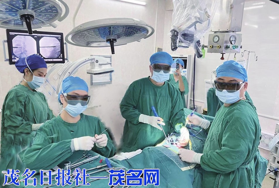 广东省人民医院骨科专家、省医粤西医院院长肖进博士开展手术。