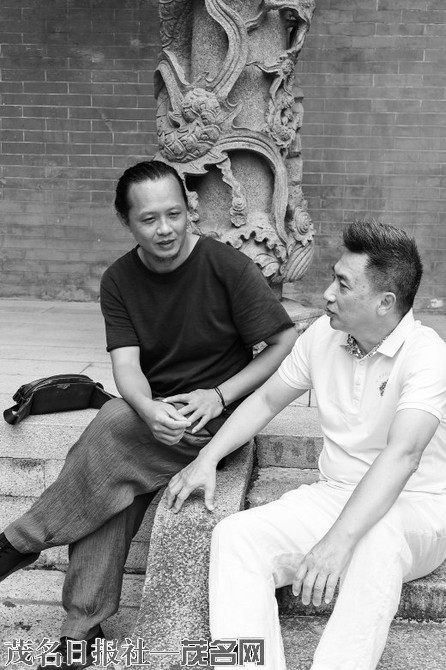 《冼太军魂》艺术总监高波(右)和总编导陈伟坚在交流。图片由受访者提供