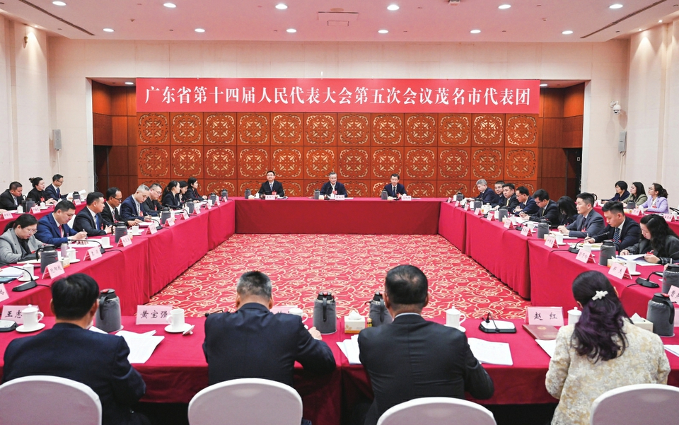 茂名代表团认真审议省政府工作报告。本报记者 甘杨松 摄
