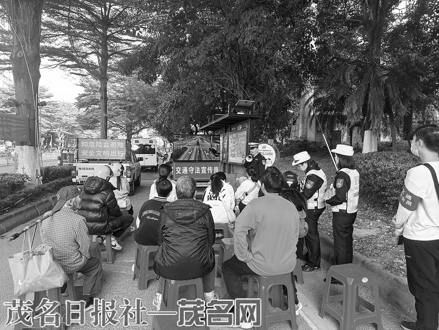 本报讯 根据广东省为期一年电动自行车摩托车交通安全专项整治行动工作的部署,切实筑牢道路安全防线,日前,高州市公安局交通管理大队聚焦摩电出行安全痛点,在学校、商圈、城乡结合部等重点区域设立固定宣传岗,以“劝导+教育+查处”深度融合模式,开展沉浸式安全宣传活动,让安全理念深入人心。