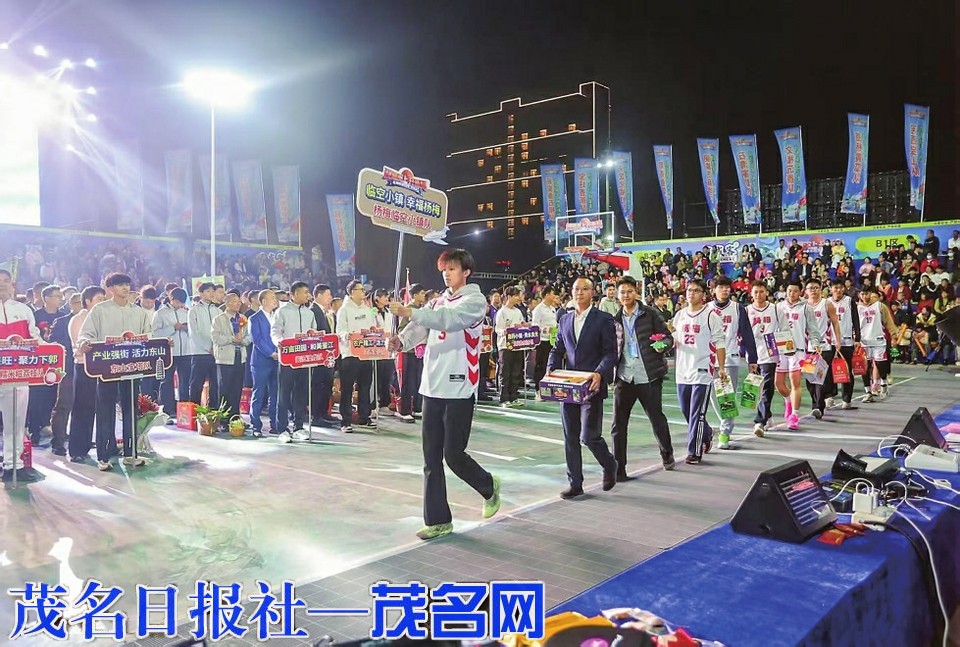 本报讯1月28日晚,化州市第四季“村BA”篮球赛在杨梅镇黄槐垌村文化广场开赛,来自该市23个镇(街道)的篮球队伍带着当地特色农产品在开幕式上精彩亮相,推动“体育+农文旅”深度融合,为化州市深入实施“百千万工程”注入新活力。