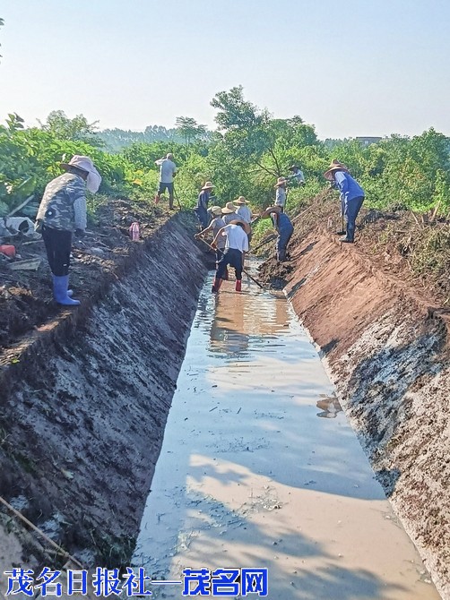 ?茂南金塘引淦组织周边群众对引水支渠进行清淤。