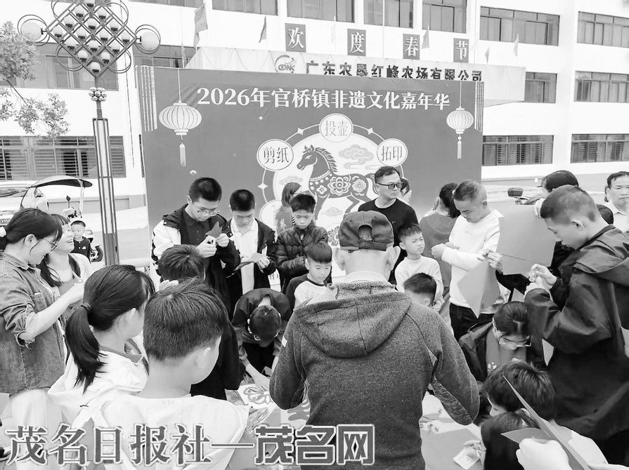 本报讯 大年初一喜气浓,非遗传承年味足。2月17日,化州市官桥镇红峰农场文化广场张灯结彩、热闹非凡,由官桥镇党委、政府主办,镇商会协办的新春非遗嘉年华活动正式启幕。活动从正月初一持续至初三,以沉浸式非遗体验点亮新春佳节,让传统文化走进街头、贴近群众,为“百千万工程”注入鲜活文化动能。