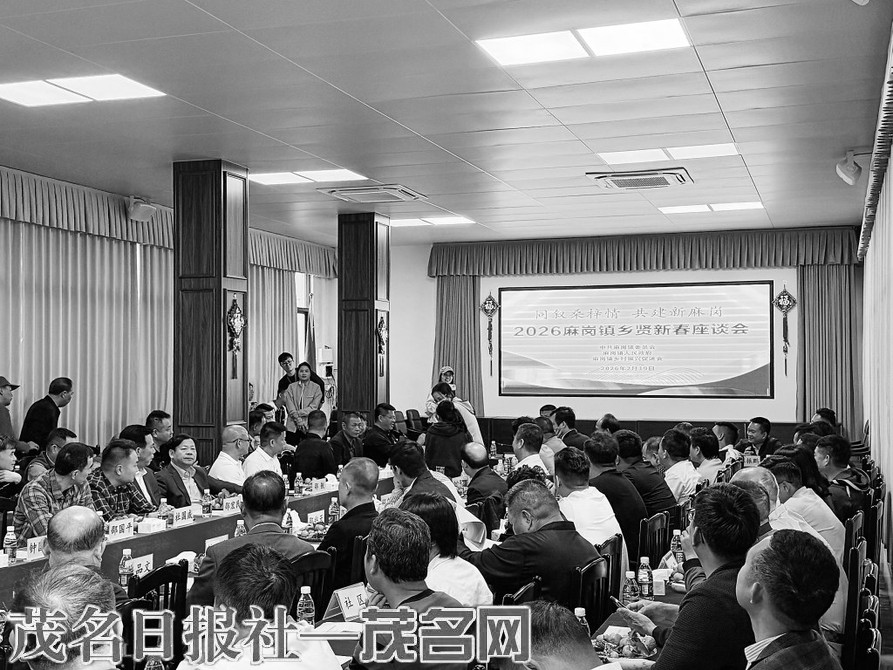 本报讯新春启新程,乡贤聚乡情。2月19日,农历大年初三,电白区麻岗镇张灯结彩、暖意融融。2026年麻岗镇乡贤新春座谈会召开,百余名乡贤代表与镇村干部欢聚一堂、共话团圆,畅叙桑梓情谊、共谋发展大计,现场掌声阵阵、气氛热烈,为推进“百千万工程”注入强劲乡贤动能(如下图)。
