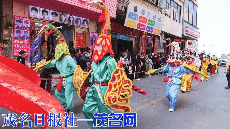 本次民俗文化巡演最大的亮点是深度融合茂名本地非物质文化遗产,将国家级、省级、市级非遗项目搬上街头舞台,让居民在家门口就能感受传统文化的独特魅力。巡演队伍中,不仅有电城本土的高脚狮舞、麒麟舞、凤鸡舞、妆春等传统民俗表演,更特邀国家级非遗文化表演团队倾情献艺,化州《跳花棚》、高州木偶戏《情牵汉俚缘》等国家级非遗项目惊艳亮相,让现场观众大开眼界。