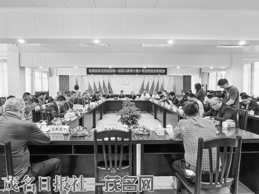 本报讯 律回春渐,新元肇启。日前,化州市林尘镇商会第一届理(监)事会第三次会议暨新春茶话会在镇政府六楼会议室举行。全体理(监)事会成员、妇联会、青委会、各联络处及秘书处人员,市、镇两级领导嘉宾参加(如右图)。