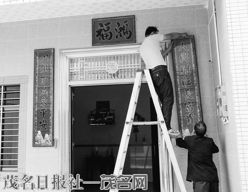 ▲贴春联